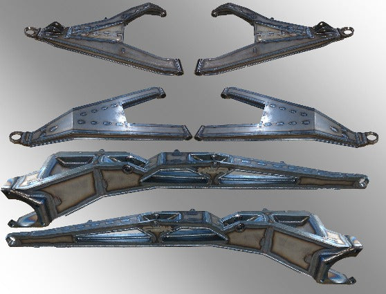 HCR's proprietary billet, slot and tab design and honeycomb boxed arms are built to withstand the beatings of rigorous off-road riding which achieving the optimal combination of strength and appeal. Every external weld is an internal plate structured into the design. While the cost-effective approach is to run tube ends for ball joints , all HCR kits run a 4130 heat treated billet end allowing all internal and external plating to be attached to this billet eliminating a potential weak point. Billets are available in both balljoint and spherical applications. The custom alloy used to manufacture every HCR kit is 30% stronger in tensile and yield strength compared to 4130 Series chromoly. This HCR custom material endures several processes and is hardened for better wear resistance and overall strength.