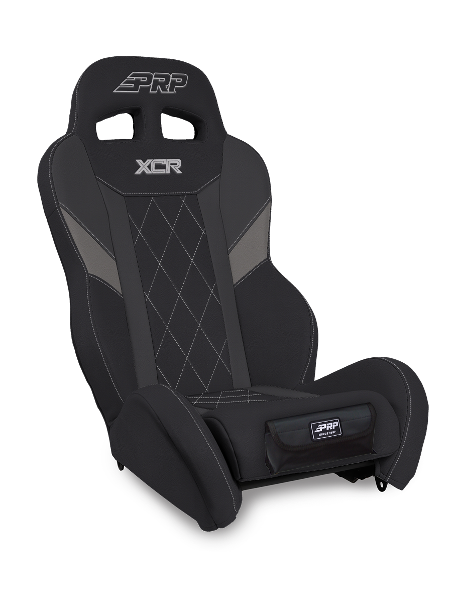 The XCR Suspension Seat combines comfort with modern styling for your UTV. Featuring low side containment - so you can easily jump in, get strapped in, and go ride! The XCR features low side bolsters towards the front that gives you some containment for when the ride gets rough. But the seat has open bolsters at the hips, which allow you to use most UTV's 3-point OEM seat belts, and make it easy to use with retractable harnesses. These low sides make it much easier to get in and out of the vehicle and to get lap belts tightened. Perfect for trail or dune rides when you are constantly jumping in and out during stops. The seats vinyl-coated nylon suspension liner and dual-density foam decrease the impact on the body, reducing the fatigue you feel after a long day in the dirt or dunes. So you can drive farther in rough terrain with more comfort. PRPs 3-layer gel infused bottom cushion keeps you comfortable on long rides. The cushion is removeable so you can take it out when cleaning and allows water, mud, sand, and dirt to drain out the bottom, rather than pile up in the seat. Features a 5th point slot if you use 5-point harnesses. The XCR Headrest features dual slot harness openings. This gives the seat a modern and aggressive look, while also making it easier to run harnesses and comm lines through. A wider shoulder area that won't pinch your torso into the seat or push your shoulders forward. Built in lumbar support means that your back will thank you after a long day of riding. Overall this seat is great for trail or dune riding, or when you're constantly getting in and out on rides. Made from durable and UV resistant vinyl. Don't forget to complete your UTV interior! Get a set of matching XCR Rear Seats, Folding Rear Seats, or Rear Bench. Then add more storage to your UTV with PRP's UTV Storage Bags. Proudly Made in the USA. FITMENT: Front Seats - Fits into the Polaris General, General 4 (Front or Rear), XPEDITION, RZR S 900, RZR S4 900, 900 Trail, Trail