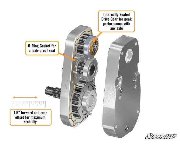 A portal gear reduction protects your drivetrain because the reduction happens in your hub instead of in your transmission. That means your axles, differential, prop shaft, and transmission will wear less than stock even if you ride harder than stock. It’s a win-win.