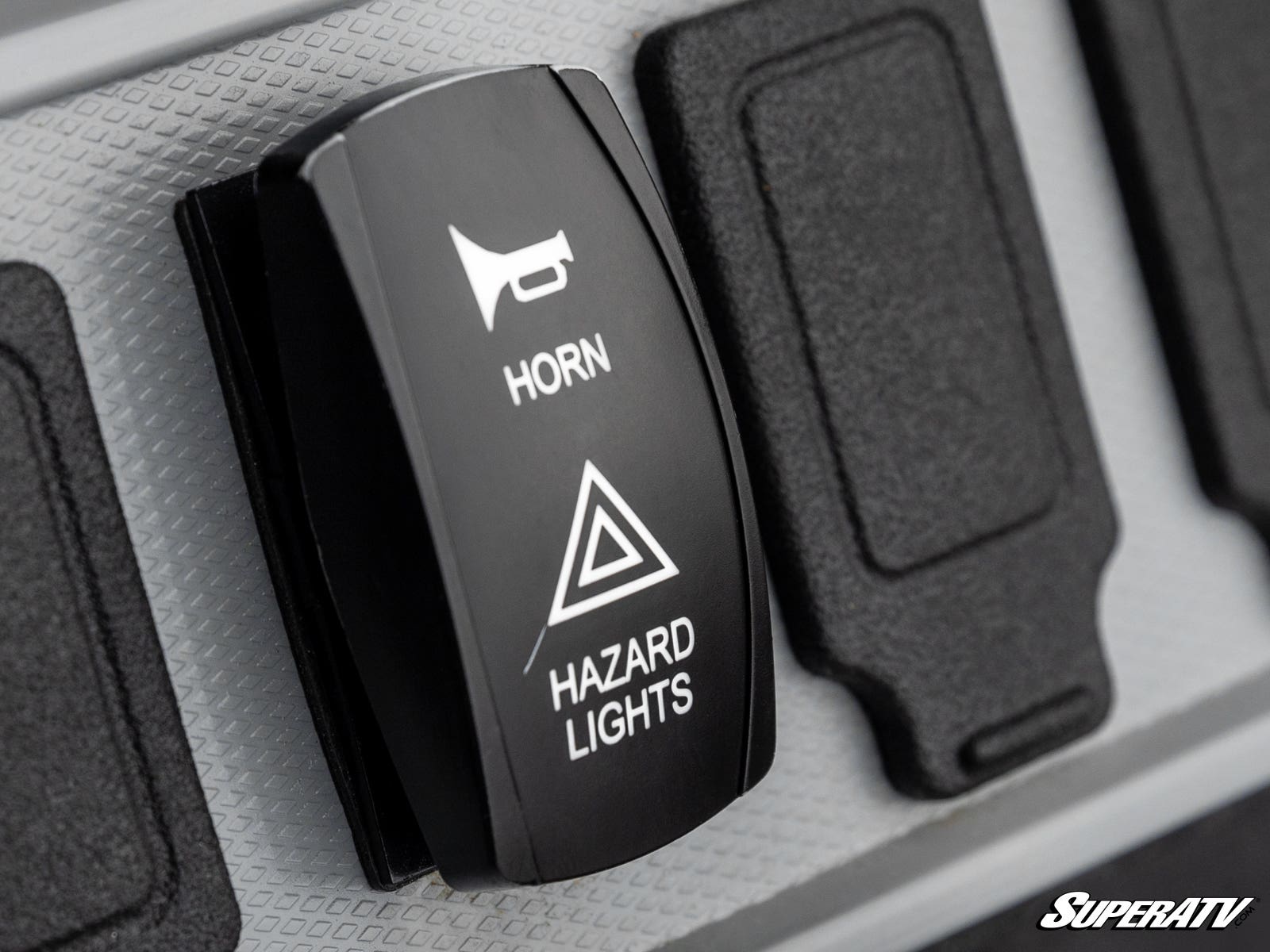 Changing your machine’s turn signals is super easy with the cool switches on your dashboard. You've got two switches right there—one for turning left or right, and another for hazard lights and the horn.