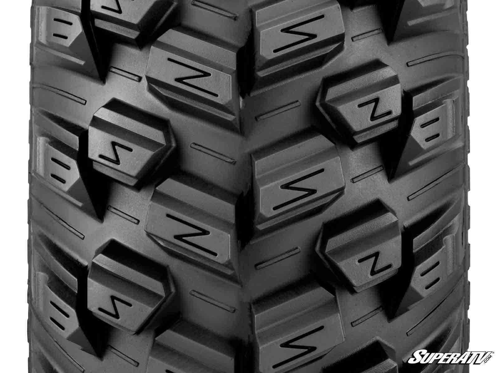 • V-shaped tread provides traction in almost any condition including slick or muddy terrain
