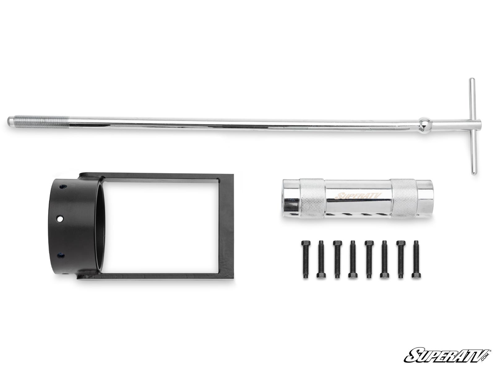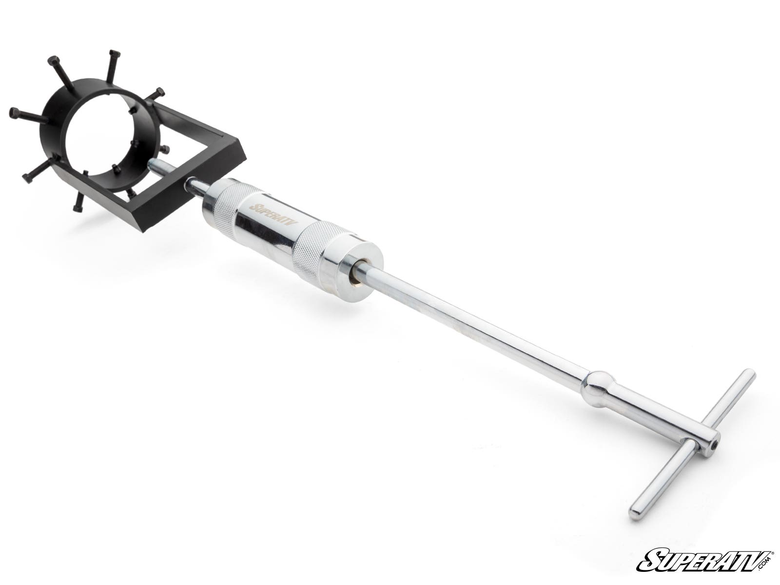 The real trick to working out those tricky axles is the slide hammer. Ours is knurled for an easy grip and has an etched SuperATV logo to add a little pizzazz. It weighs 4.7 lbs, which helps build force but won’t make it so heavy that it’s unwieldy. And the upper dowel makes the whole tool easier to use and hold. And since it’s made out of high-quality steel, you’d have to be an Olympic weightlifter to bend it out of shape. Trust SuperATV—the axle experts—to make the best axle puller around.